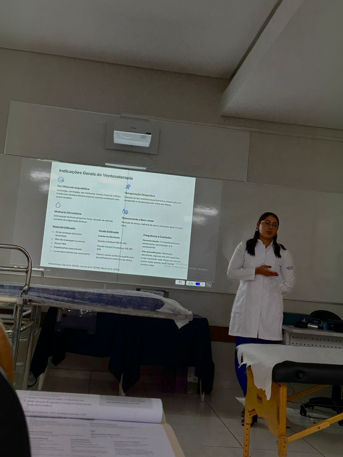 Biomedicina UNIFIPA realiza curso prático de Ventosaterapia Luiz Felicio Chaves sexta, 10 de outubro, 2025 O curso de Biomedicina da UNIFIPA promoveu, dia 9 de outubro, curso prático de Ventosaterapia ministrado pela biomédica Dra. Avaniele Silva. A atividade foi destinada aos estudantes do curso e teve como objetivo proporcionar vivência completa sobre a técnica terapêutica milenar, amplamente utilizada nas áreas de estética, saúde e bem-estar. O curso teve abordagens teórica e prática supervisionadas, em que foram discutidos os princípios fisiológicos da Ventosaterapia, os tipos e formas de aplicação das ventosas, bem como suas indicações e benefícios. Durante a parte prática, os alunos puderam aplicar as técnicas entre si, experimentando os efeitos voltados ao relaxamento muscular, melhora da circulação, liberação miofascial e estética corporal.