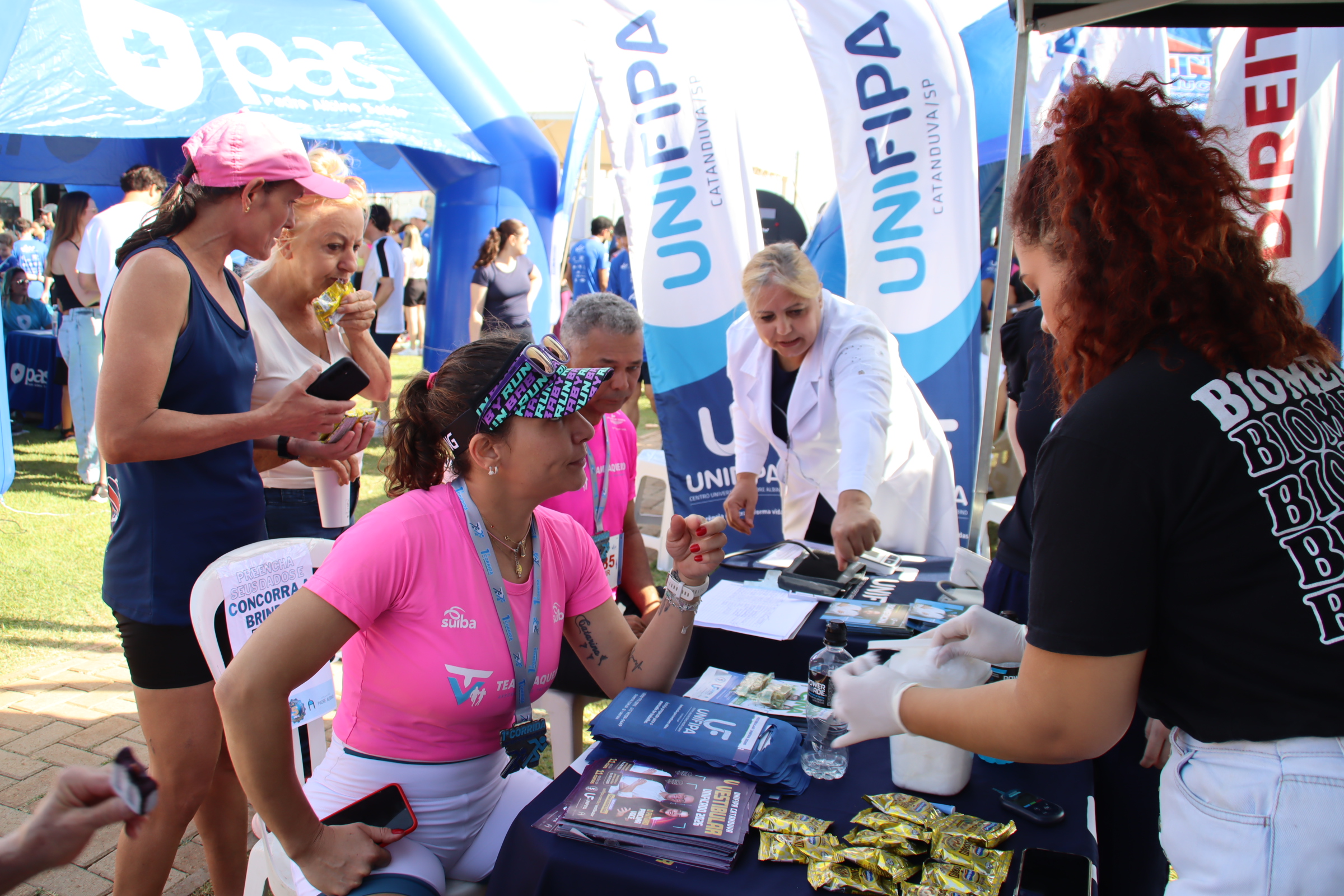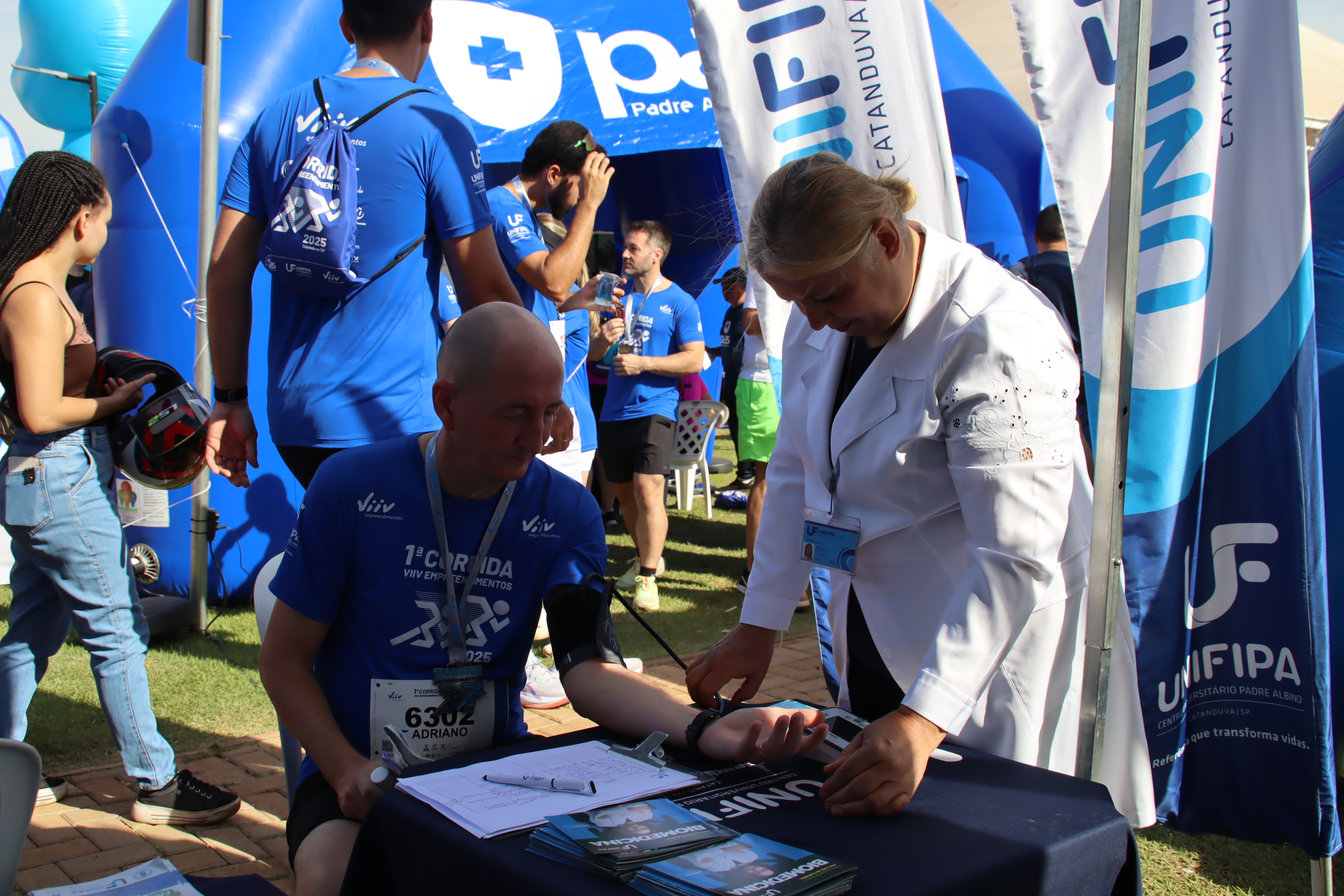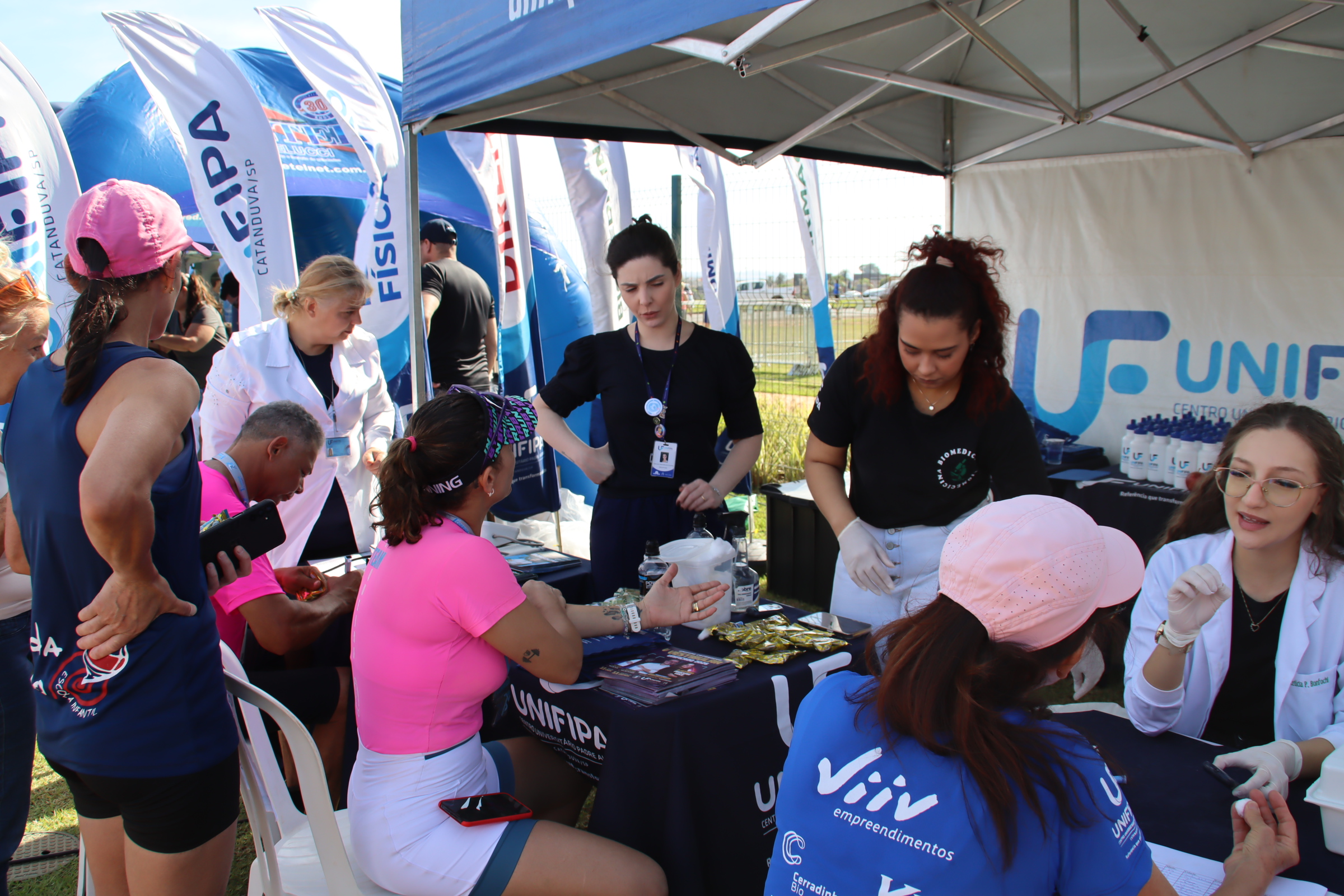 Unifipa promove ações de saúde na 1ª Corrida Viiv Empreendimentos Marcella Milani segunda, 27 de outubro, 2025 A Unifipa participou da 1ª Corrida Viiv Empreendimentos, no dia 26 de outubro, oferecendo suporte e atendimento aos participantes por meio dos cursos de Biomedicina e Educação Física. Os alunos de Biomedicina realizaram aferição de pressão arterial e testagem de glicemia, orientando os corredores sobre a importância do acompanhamento preventivo da saúde. Já os alunos do curso de Educação Física deram suporte técnico às atividades do evento, auxiliando no aquecimento, alongamento e orientação dos participantes antes e depois da corrida.