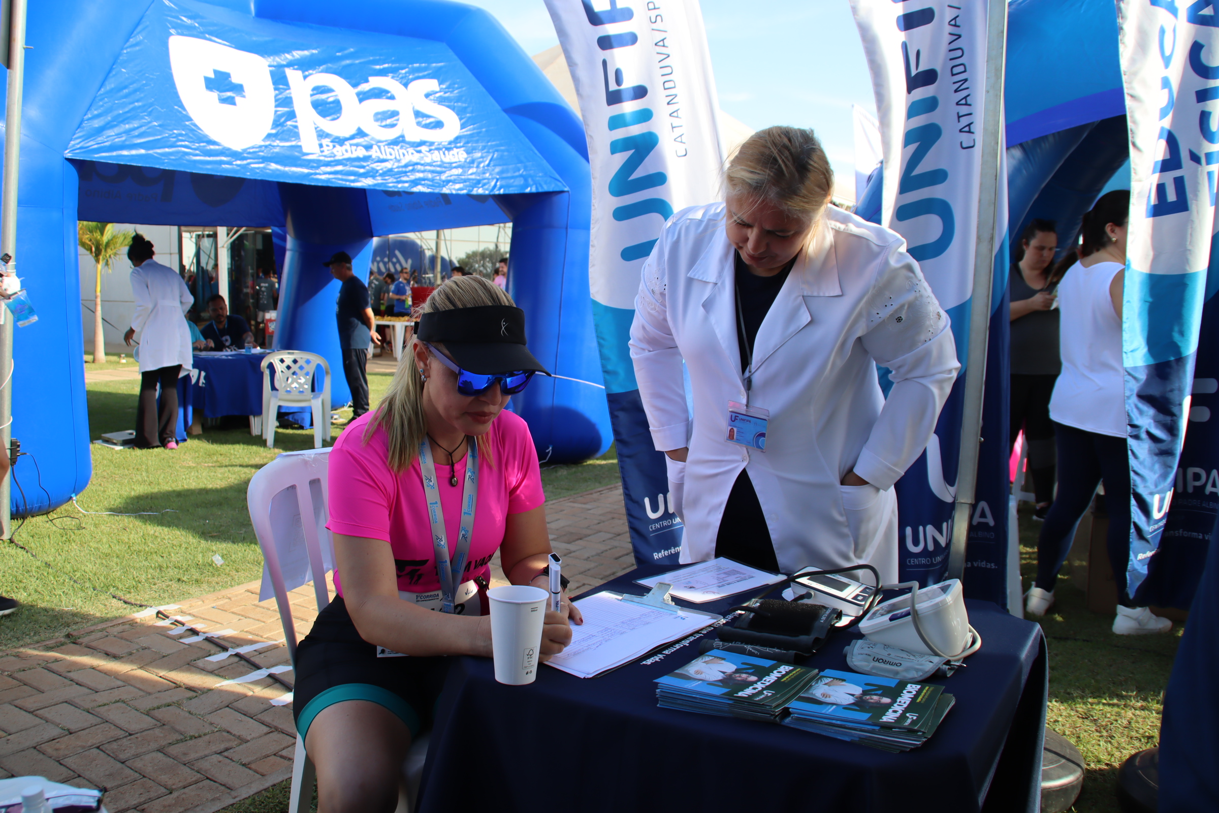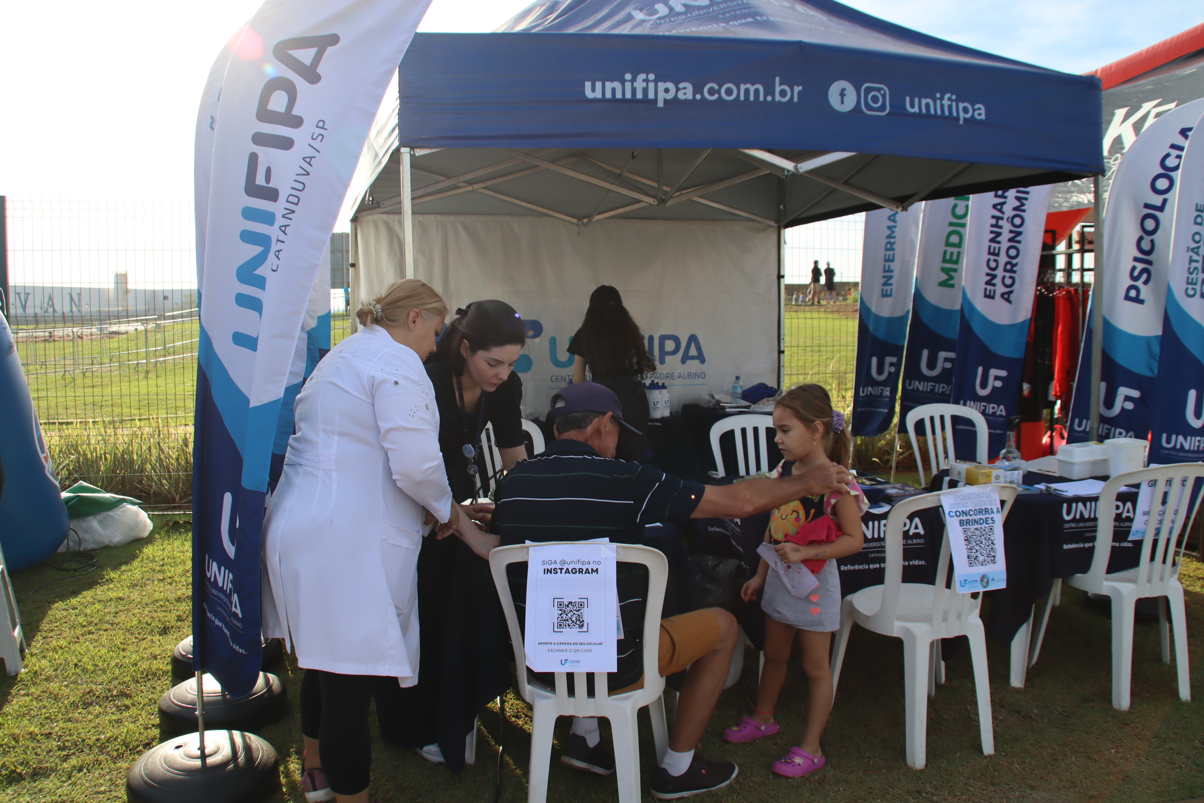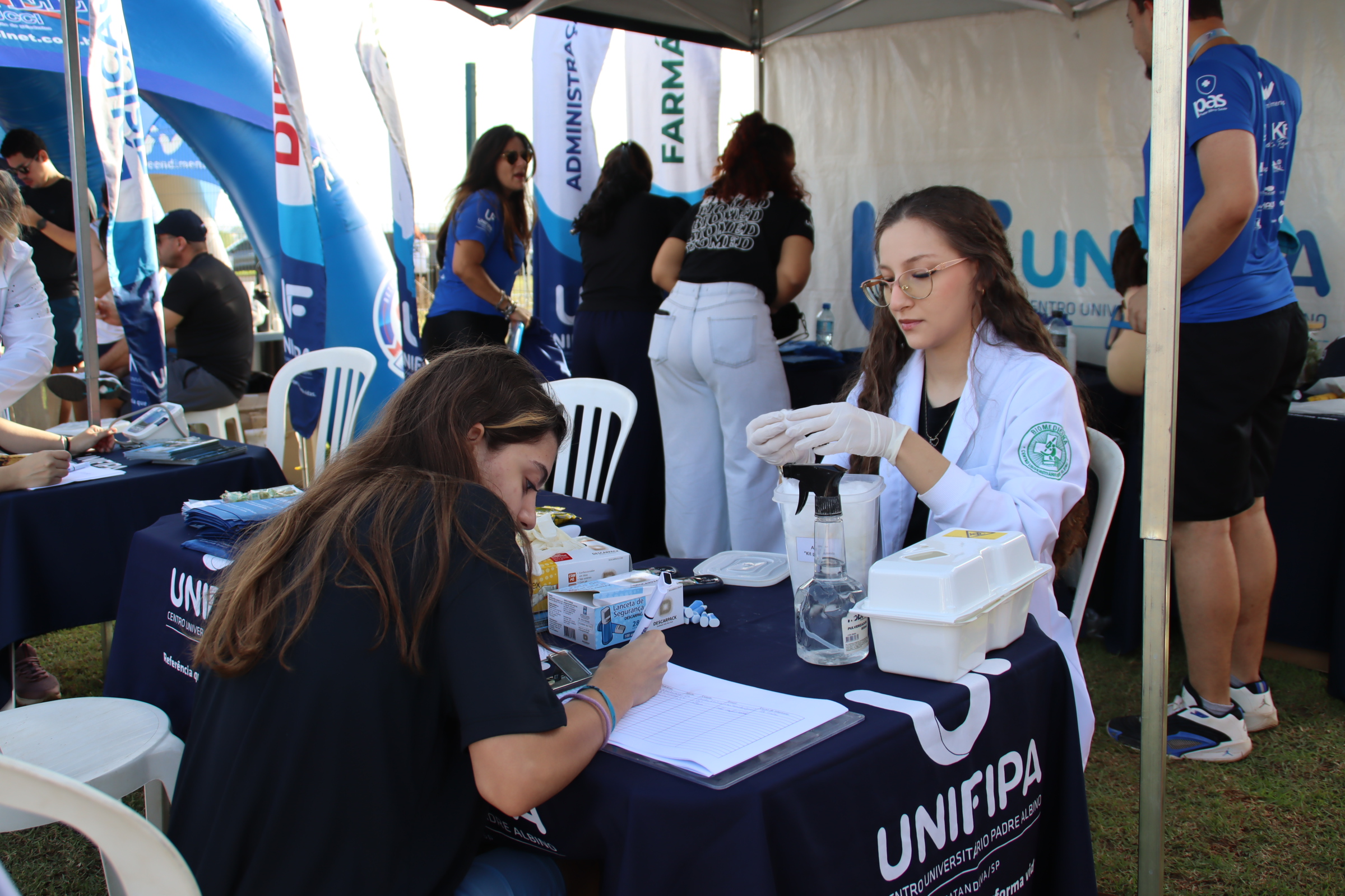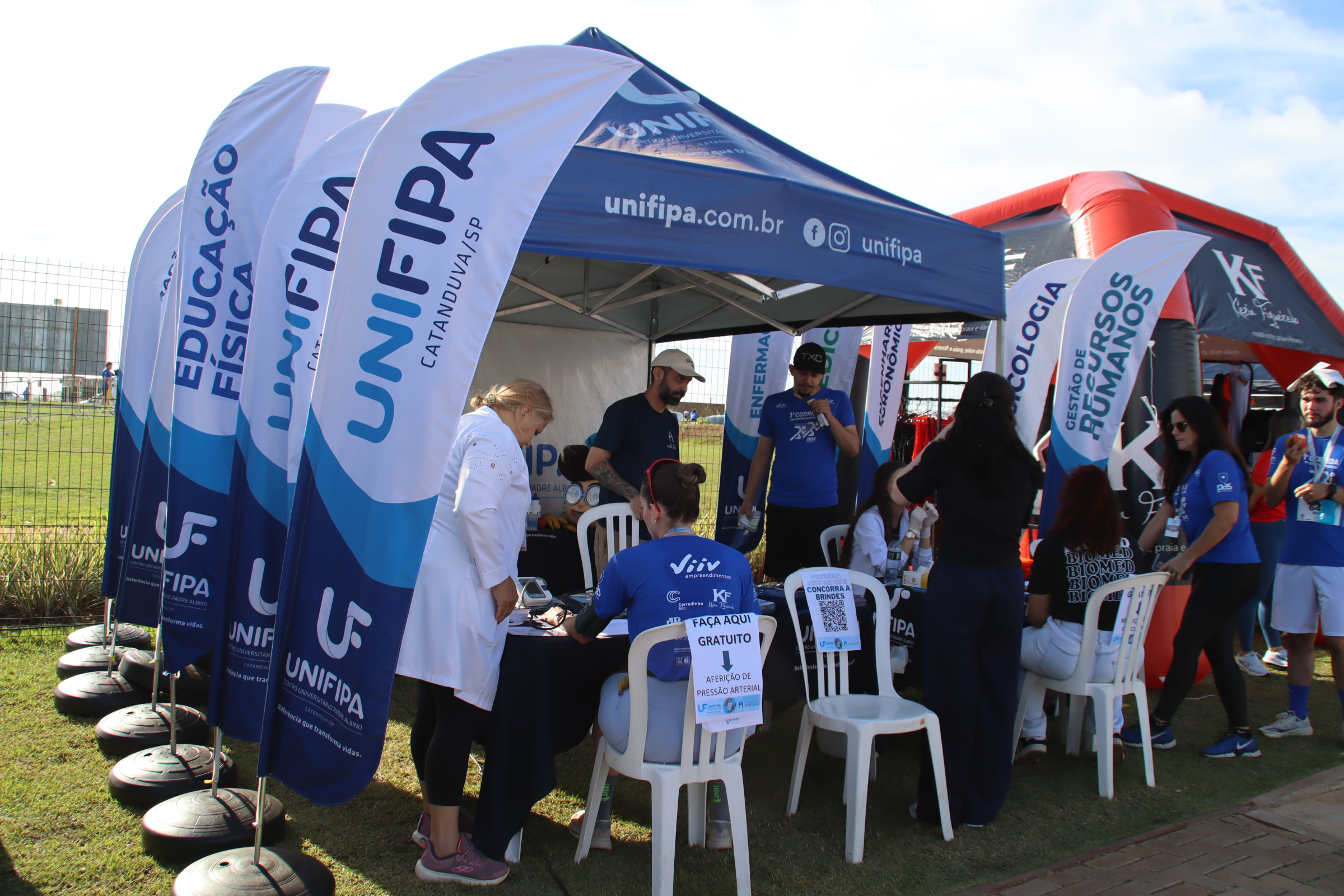 Unifipa promove ações de saúde na 1ª Corrida Viiv Empreendimentos Marcella Milani segunda, 27 de outubro, 2025 A Unifipa participou da 1ª Corrida Viiv Empreendimentos, no dia 26 de outubro, oferecendo suporte e atendimento aos participantes por meio dos cursos de Biomedicina e Educação Física. Os alunos de Biomedicina realizaram aferição de pressão arterial e testagem de glicemia, orientando os corredores sobre a importância do acompanhamento preventivo da saúde. Já os alunos do curso de Educação Física deram suporte técnico às atividades do evento, auxiliando no aquecimento, alongamento e orientação dos participantes antes e depois da corrida.