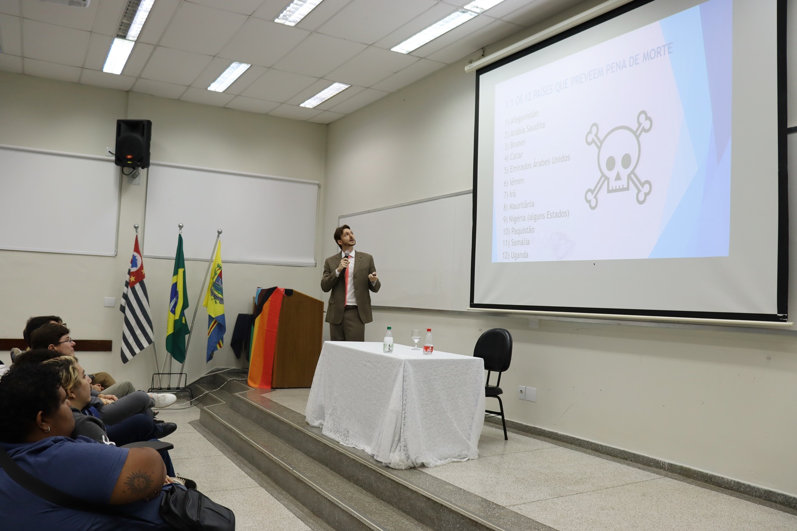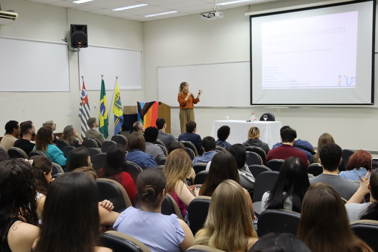 Direito Unifipa abre espaço para discutir gênero, sexualidade e justiça social Alan Gazola quarta, 05 de novembro, 2025 Especialistas debatem inclusão e políticas públicas para população LGBTQIA+ no VI Ciclo de Palestras: Direito e Sexualidade. Na última terça-feira, 4 de novembro, o curso de Direito da Unifipa realizou o VI Ciclo de Palestras – Direito e Sexualidade, no campus São Francisco. Promovido pelo projeto de extensão coordenado pela profa. Dra. Márcia Menin, ele reuniu alunos, egressos e comunidade em debate voltado à reflexão sobre a diversidade e aos avanços jurídicos relacionados à população LGBTQIA+. O coordenador do curso, Dr. Luís Rossi, abriu o encontro destacando a relevância de promover discussões que extrapolem o conteúdo curricular tradicional. “São raríssimas as faculdades de Direito que promovem debates como este. Para que serve o Direito senão para dar voz a quem muitas vezes não tem voz? Infelizmente, ainda não aprendemos a lidar com a diferença enquanto sociedade. Este tema não serve apenas como conteúdo extracurricular, mas como oportunidade de mercado de trabalho para atuar em defesa de quem merece ser respeitado”, ressaltou. A programação seguiu com duas palestras centrais. A advogada e pesquisadora Flávia Benetti Castro, egressa da Unifipa, abordou o tema “A importância do conceito de gênero no Judiciário e nas normatizações brasileiras”. Ela é professora universitária, presidente da Comissão de Ensino Jurídico da OAB de São José do Rio Preto, mestre e doutoranda pela UNESP e integrante do grupo de pesquisa “Tributação e Gênero” da FGV.Segundo Flávia, o Direito tem evoluído na recepção do conceito de gênero tanto na legislação quanto nas decisões judiciais. “Traçamos panorama de como o Direito vem adaptando normas antigas e incorporando o conceito de gênero nas legislações mais recentes, além de como o Judiciário tem julgado com essa ótica. É fundamental que os alunos compreendam que o Direito precisa caminhar junto com outras ciências humanas para responder às demandas sociais”, explicou. O segundo convidado, Dr. Fábio Soares de Carvalho Sposito, advogado, mestre em Direito Público e Evolução Social, ministrou a palestra “Direitos LGBTQIA+: Avanços e Desafios”. Ele destacou conquistas legais recentes e os obstáculos ainda enfrentados pela comunidade. “Avançamos muito na garantia de direitos para o público LGBT, como a criminalização da homotransfobia, o reconhecimento de direitos previdenciários a casais homoafetivos, o direito ao casamento civil igualitário e a ampliação da Lei Maria da Penha a mulheres trans e travestis. Mas ainda enfrentamos desafios a serem discutidos, como o preconceito estrutural – proibição da transgêneros a frequentarem banheiros com que eles se identificam- e a falta de políticas públicas específicas”, apontou Sposito, que também é especialista em Direitos LGBTQIA+, Família e Sucessões, e vice-coordenador da Comissão da Diversidade Sexual e de Gênero da OAB São José do Rio Preto. Presente no evento, o juiz do Trabalho Dr. Wagner Ramos de Quadros elogiou a iniciativa. “A Unifipa e o curso de Direito têm compromisso com a sociedade. Eventos como este ampliam o conhecimento e promovem respeito. É fundamental trazer informação de qualidade sobre temas que nos ajudam a evoluir enquanto seres humanos”, afirmou. Encerrando o encontro, a profa. Dra. Márcia Menin avaliou positivamente o resultado. “O Ciclo de Palestras reforça nosso papel enquanto instituição comprometida com a formação humanista e socialmente responsável. Avançamos muito, mas ainda há um longo caminho para que a convivência em sociedade mais justa, plural e inclusiva. Agradeço aos membros do projeto de extensão pelo empenho e dedicação em tornar este evento um sucesso”, concluiu. Fotos: Comunicação FPA