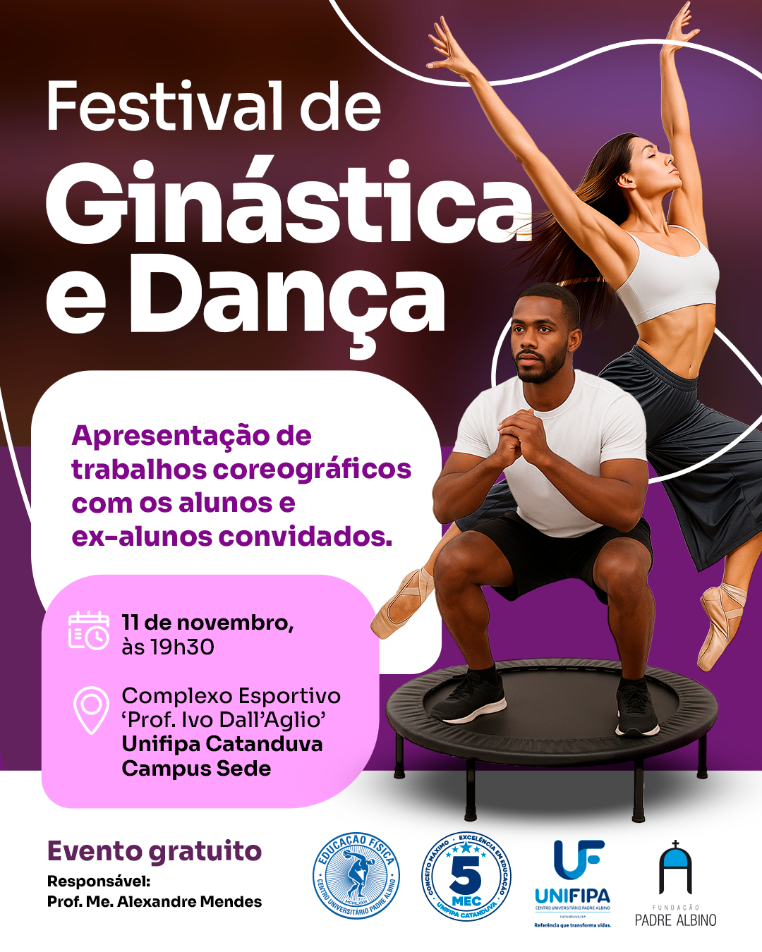 Educação Física Unifipa promove Festival de Ginástica e Dança na próxima terça Alan Gazola quinta, 06 de novembro, 2025 Disciplinas que envolvem técnicas corporais, práticas pedagógicas e expressões artísticas são apresentadas em forma de espetáculo pelos alunos. O curso de Educação Física da Unifipa promove, na próxima terça-feira, 11 de novembro, a nova edição do Festival de Ginástica e Dança, um dos eventos mais aguardados do calendário acadêmico. O espetáculo terá início às 19h30, na quadra do complexo esportivo “Prof. Ivo Dall’Aglio”, no campus sede da instituição. Voltado para alunos, egressos e público interessado, o festival vai apresentar trabalhos coreográficos desenvolvidos com os alunos ao longo do ano letivo. “As apresentações refletem o aprendizado das disciplinas que envolvem técnicas corporais, práticas pedagógicas e expressões artísticas, transformando-se em verdadeiro espetáculo de dança e ginástica”, ressalta o Prof. Me. Alexandre Mendes, responsável pela organização. Segundo Alexandre, o festival não possui caráter competitivo, mas se destaca pela qualidade técnica e artística das apresentações. “Sem caráter competitivo, mas com direção artística e técnica com qualidade de um grande espetáculo. O Festival é evento importante do curso, aguardado anualmente pelos alunos. A cada edição, as coreografias são desenvolvidas de acordo com as práticas pedagógicas do ano”, explica. Além das performances dos estudantes haverá participação especial de egressos do curso, que hoje atuam nas áreas de Arte, Educação e Esporte, convidados para mostrar seus trabalhos.