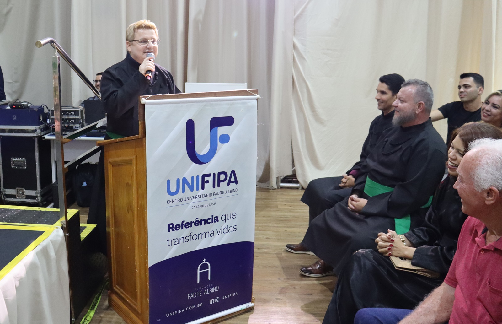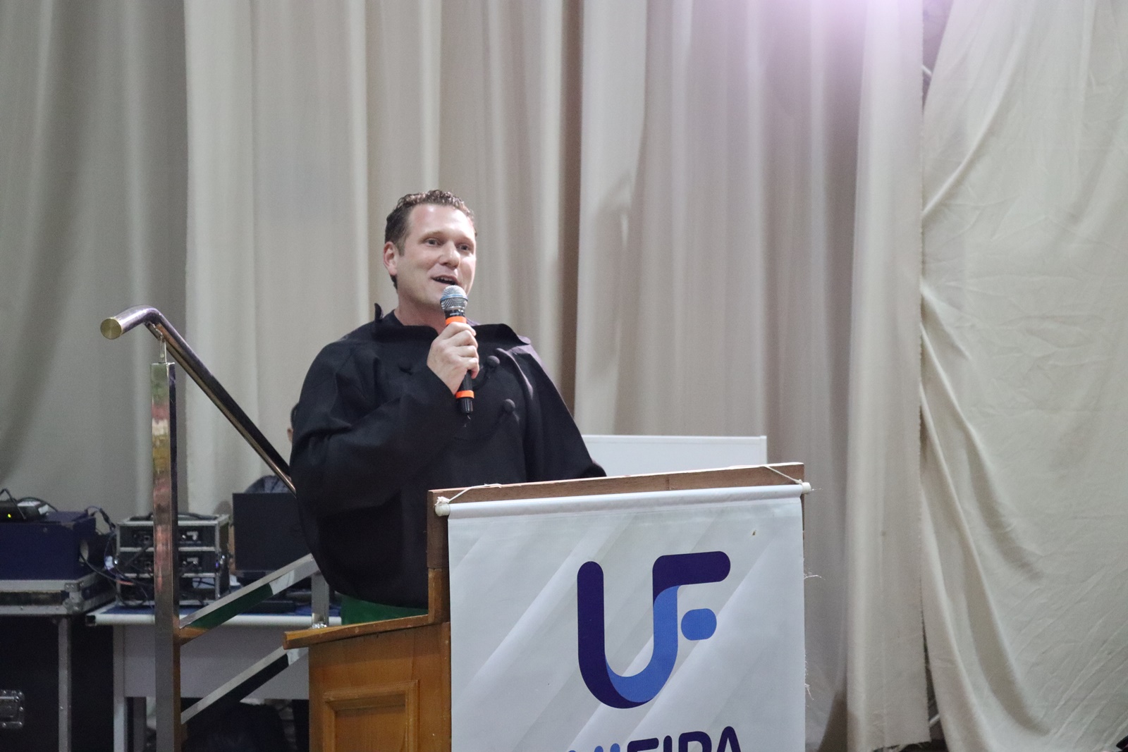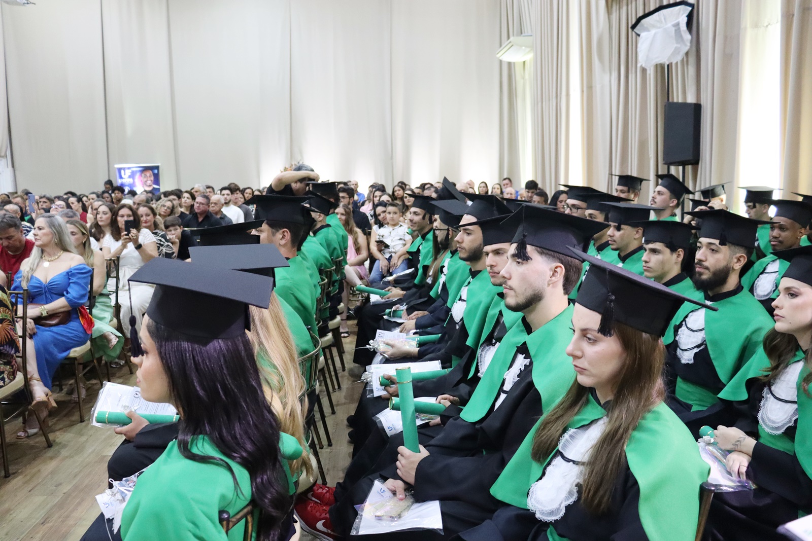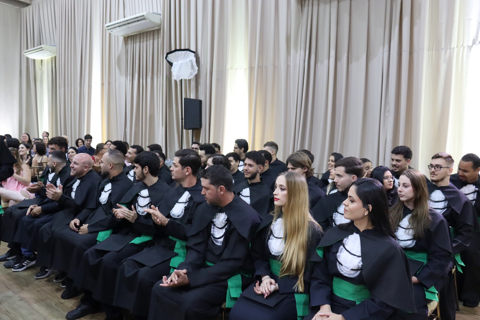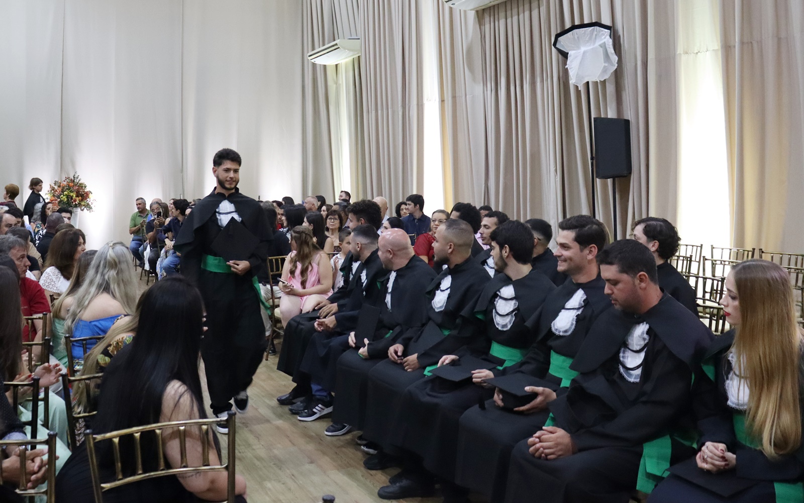 15ª Turma de Educação Física Unifipa reúne família e amigos em noite de celebração Alan Gazola quinta, 11 de dezembro, 2025 Solenidade destacou união, superação e o compromisso com a saúde e o bem-estar da comunidade de 43 novos bacharéis. Na noite desta quarta-feira, 10 de dezembro, familiares, amigos, docentes e colaboradores se reuniram no auditório do campus sede da Unifipa para celebrar a colação de grau da 15ª Turma de Bacharelado do curso de Educação Física, cerimônia repleta de emoção, reconhecimento e simbolismo. A 15ª Turma levou o nome de seu patrono e coordenador do curso, Prof. Me. Igor Augusto Braz. Para paraninfo da turma foi escolhido o Prof. Carlos Alexandre Mendes. A sessão solene foi aberta pela Pró-Reitora de Ensino de Graduação, Extensão, Assuntos Comunitários e EaD, Profa. Dra. Andréia de Haro Moreno, que destacou o papel social da Educação Física e o compromisso da Unifipa com a formação humanística. Em seguida, chamando nome por nome, os 43 novos profissionais da Educação Física receberam a outorga de grau, O orador da turma, Pablo Corrêa dos Santos, trouxe à tona memórias compartilhadas e agradecimentos emocionados aos familiares, professores e colegas. Com voz embargada, expressou a importância da jornada vivida. “Cada desafio que enfrentamos nos fortaleceu. Hoje, não celebramos apenas um diploma, mas tudo aquilo que nos trouxe até aqui: esforço, amizade e a certeza de que podemos transformar vidas por meio do movimento”. O paraninfo, Prof. Carlos Alexandre, reforçou o papel transformador da profissão e motivou os recém-formados a buscarem excelência. “Sejam profissionais inquietos, curiosos e apaixonados. A Educação Física é ponte para a saúde, para a formação humana e para a superação de limites. Que vocês tenham coragem para trilhar caminhos grandiosos”. Homenageado pela turma, o coordenador Igor Braz, em seu discurso, destacou a identidade construída pela turma ao longo dos anos, marcada pela união, resiliência e propósito. “Vocês chegaram até aqui porque acreditaram no poder do conhecimento, da persistência e do amor pela profissão. A Educação Física exige exaustão e desafios, mas ela também transforma, integra, acolhe — e vocês são agora agentes dessa transformação. Nunca deixem que os desafios diminuam a paixão que trouxe cada um até a Unifipa”, afirmou, emocionado. Ele ainda reforçou a importância da atuação ética e comprometida. “Vocês são a geração que pensa o movimento como cuidado, inclusão e ciência. Levem consigo a responsabilidade e o brilho que sempre demonstraram”. Após os discursos, os formandos homenagearam os docentes e colaboradores que marcaram sua trajetória, evidenciando o vínculo construído ao longo da graduação. “A 15ª Turma de Educação Física da Unifipa deixa seu legado como grupo que fez da determinação e do companheirismo suas marcas, levando consigo o compromisso de promover qualidade de vida e inspirar movimento por onde passar”, finalizou a pró-reitora Profa. Dra. Andréia Moreno. Ao final, abraços, fotos e sorrisos de celebração. Fotos: Comunicação FPA