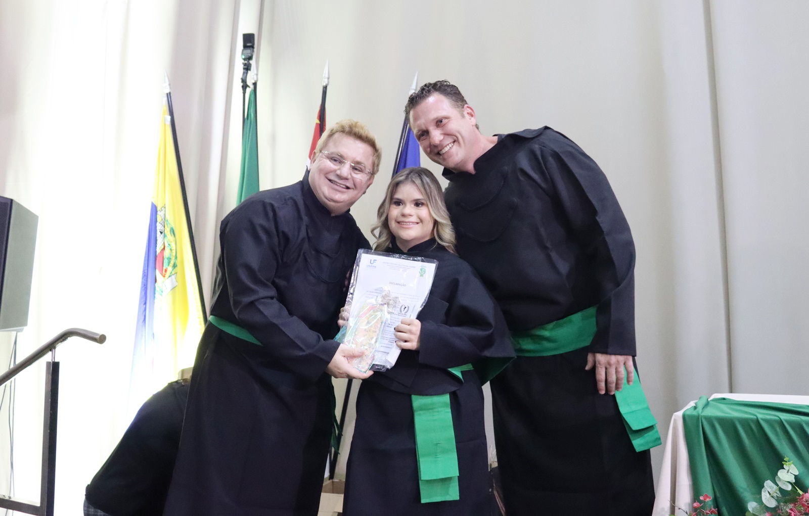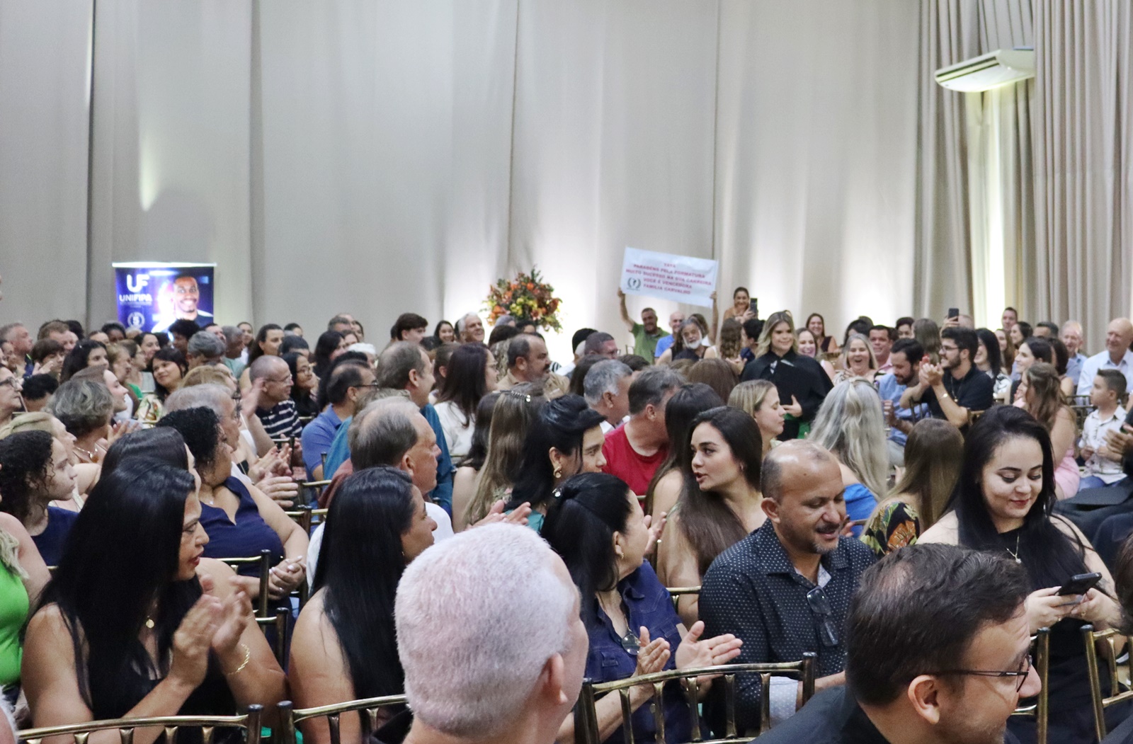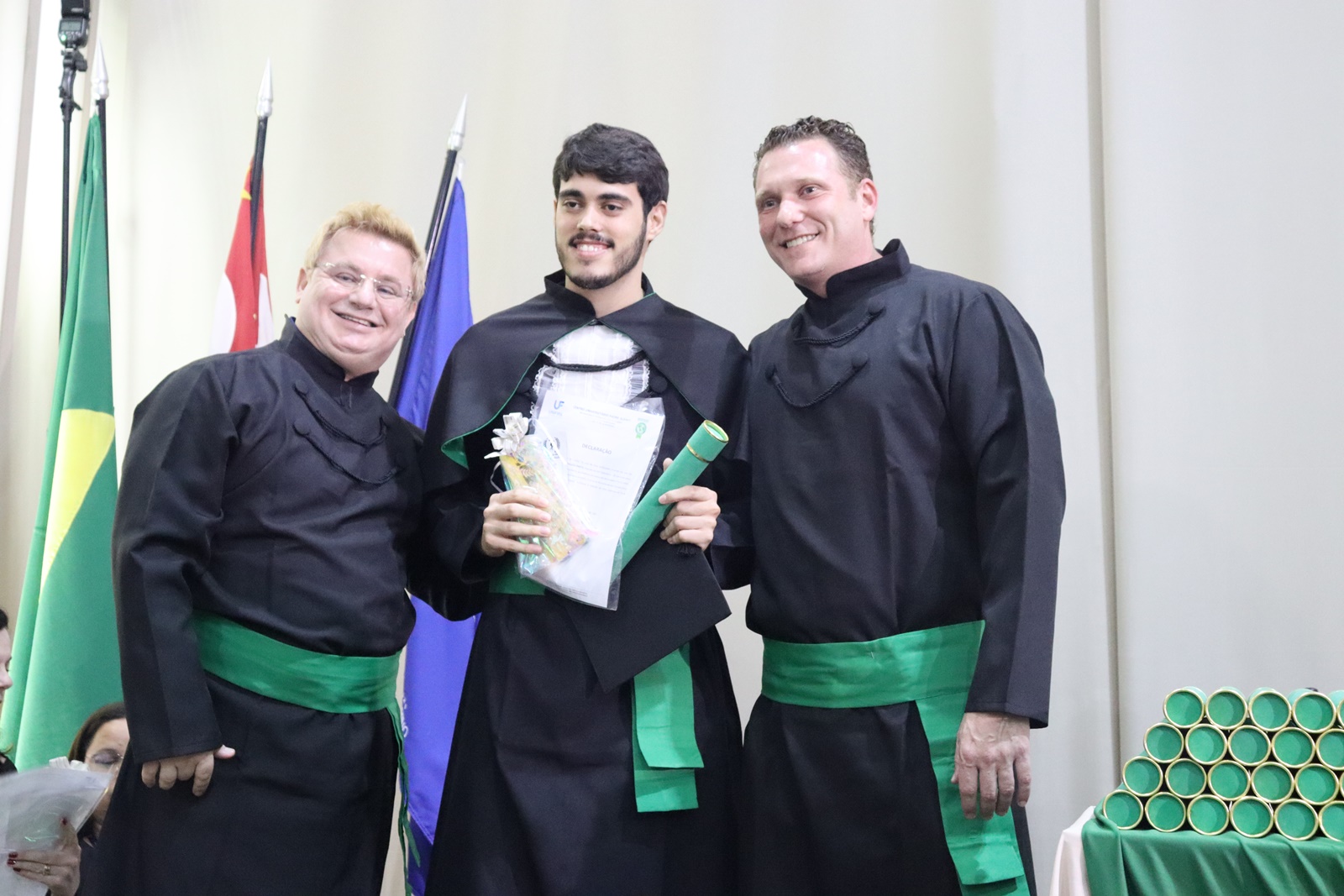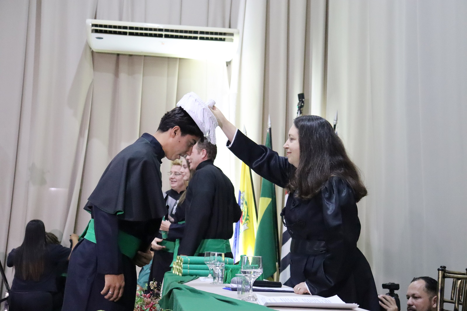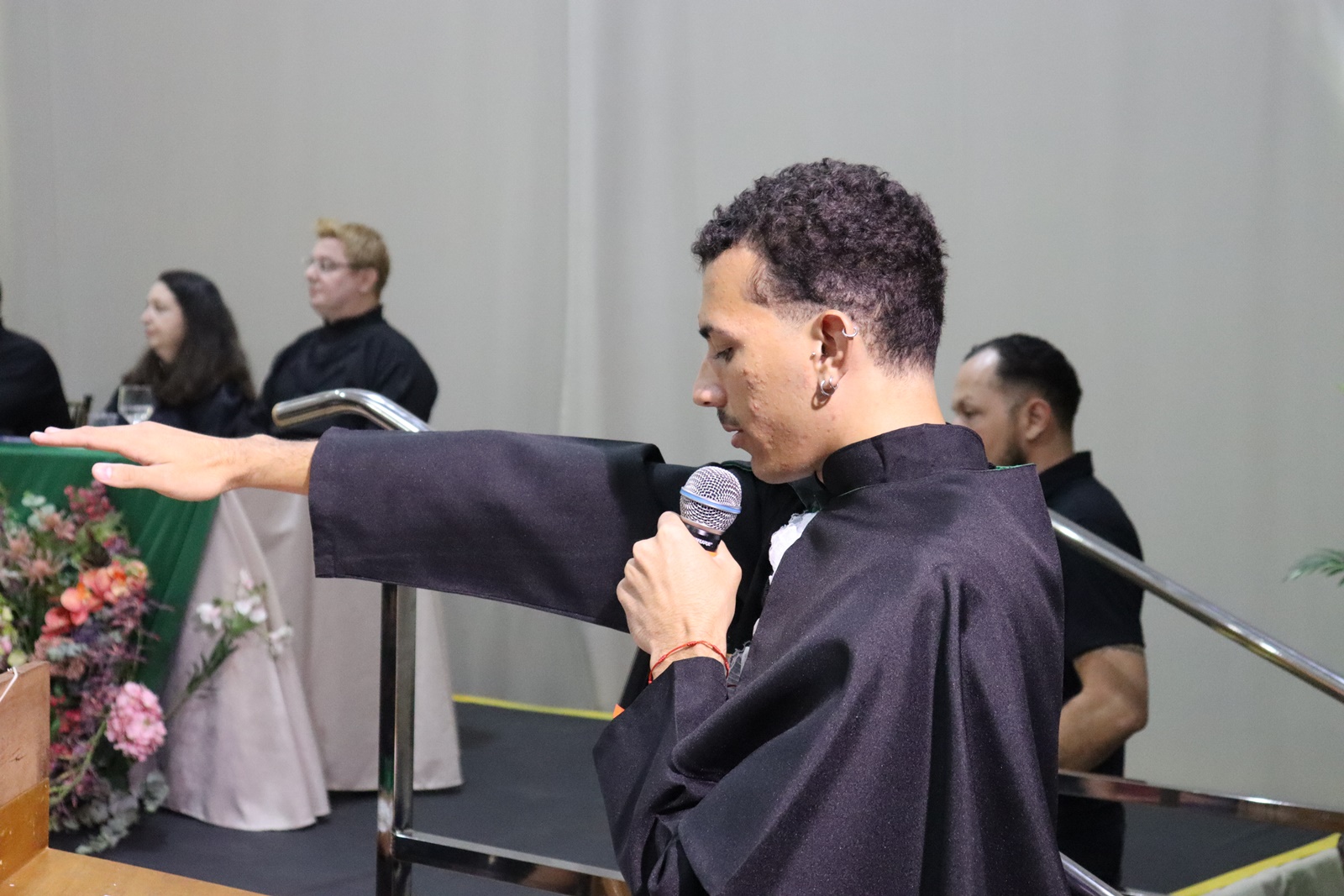 15ª Turma de Educação Física Unifipa reúne família e amigos em noite de celebração Alan Gazola quinta, 11 de dezembro, 2025 Solenidade destacou união, superação e o compromisso com a saúde e o bem-estar da comunidade de 43 novos bacharéis. Na noite desta quarta-feira, 10 de dezembro, familiares, amigos, docentes e colaboradores se reuniram no auditório do campus sede da Unifipa para celebrar a colação de grau da 15ª Turma de Bacharelado do curso de Educação Física, cerimônia repleta de emoção, reconhecimento e simbolismo. A 15ª Turma levou o nome de seu patrono e coordenador do curso, Prof. Me. Igor Augusto Braz. Para paraninfo da turma foi escolhido o Prof. Carlos Alexandre Mendes. A sessão solene foi aberta pela Pró-Reitora de Ensino de Graduação, Extensão, Assuntos Comunitários e EaD, Profa. Dra. Andréia de Haro Moreno, que destacou o papel social da Educação Física e o compromisso da Unifipa com a formação humanística. Em seguida, chamando nome por nome, os 43 novos profissionais da Educação Física receberam a outorga de grau, O orador da turma, Pablo Corrêa dos Santos, trouxe à tona memórias compartilhadas e agradecimentos emocionados aos familiares, professores e colegas. Com voz embargada, expressou a importância da jornada vivida. “Cada desafio que enfrentamos nos fortaleceu. Hoje, não celebramos apenas um diploma, mas tudo aquilo que nos trouxe até aqui: esforço, amizade e a certeza de que podemos transformar vidas por meio do movimento”. O paraninfo, Prof. Carlos Alexandre, reforçou o papel transformador da profissão e motivou os recém-formados a buscarem excelência. “Sejam profissionais inquietos, curiosos e apaixonados. A Educação Física é ponte para a saúde, para a formação humana e para a superação de limites. Que vocês tenham coragem para trilhar caminhos grandiosos”. Homenageado pela turma, o coordenador Igor Braz, em seu discurso, destacou a identidade construída pela turma ao longo dos anos, marcada pela união, resiliência e propósito. “Vocês chegaram até aqui porque acreditaram no poder do conhecimento, da persistência e do amor pela profissão. A Educação Física exige exaustão e desafios, mas ela também transforma, integra, acolhe — e vocês são agora agentes dessa transformação. Nunca deixem que os desafios diminuam a paixão que trouxe cada um até a Unifipa”, afirmou, emocionado. Ele ainda reforçou a importância da atuação ética e comprometida. “Vocês são a geração que pensa o movimento como cuidado, inclusão e ciência. Levem consigo a responsabilidade e o brilho que sempre demonstraram”. Após os discursos, os formandos homenagearam os docentes e colaboradores que marcaram sua trajetória, evidenciando o vínculo construído ao longo da graduação. “A 15ª Turma de Educação Física da Unifipa deixa seu legado como grupo que fez da determinação e do companheirismo suas marcas, levando consigo o compromisso de promover qualidade de vida e inspirar movimento por onde passar”, finalizou a pró-reitora Profa. Dra. Andréia Moreno. Ao final, abraços, fotos e sorrisos de celebração. Fotos: Comunicação FPA