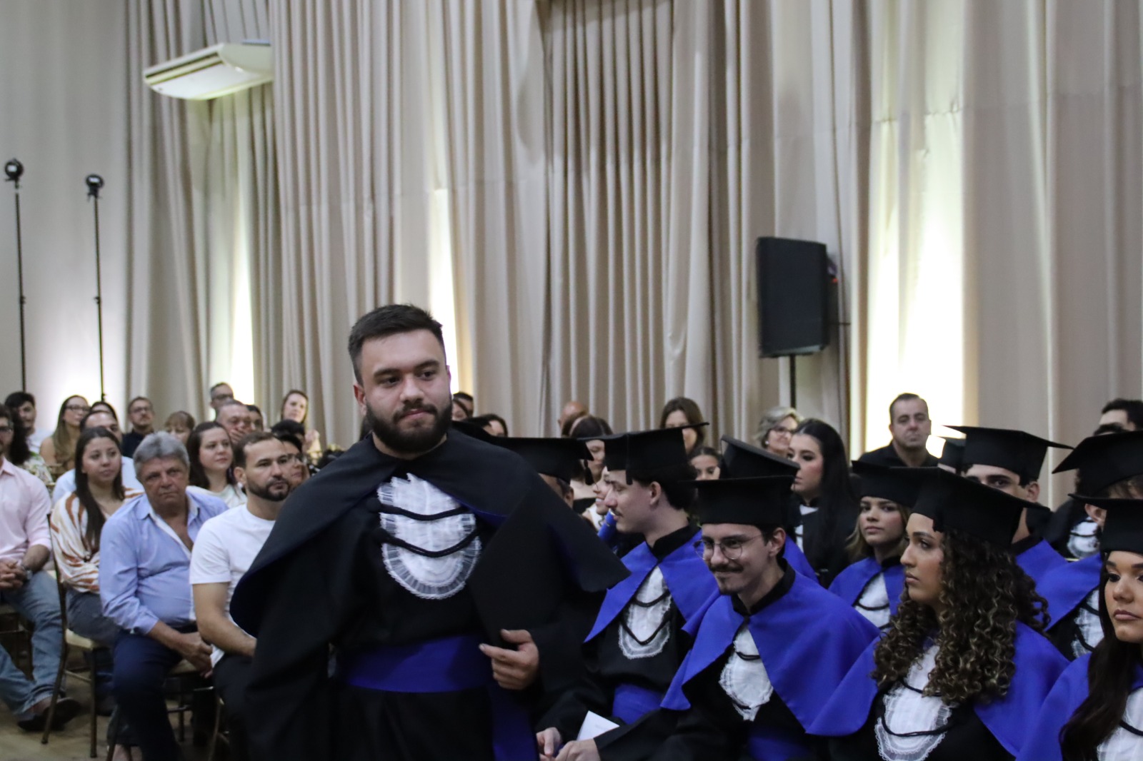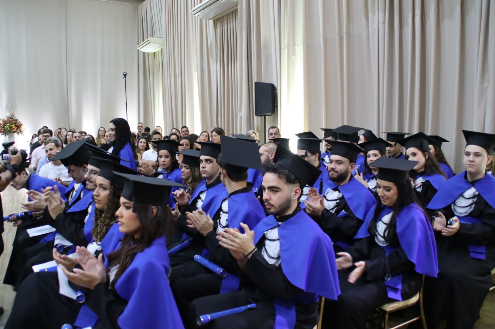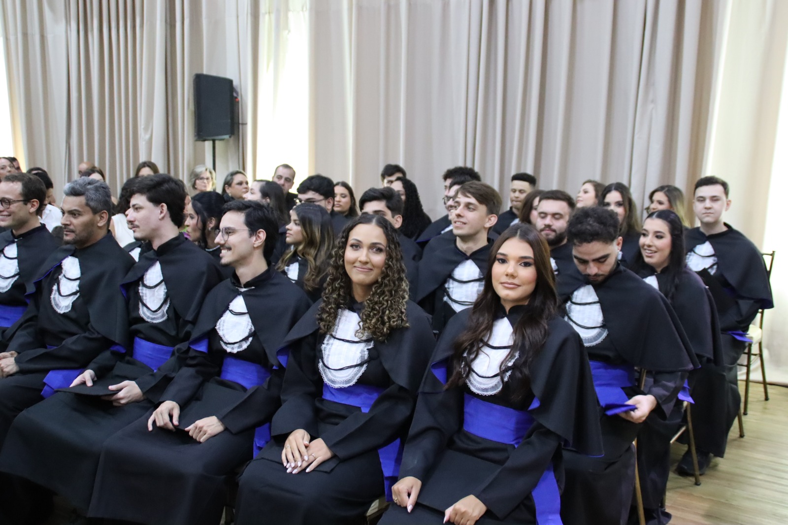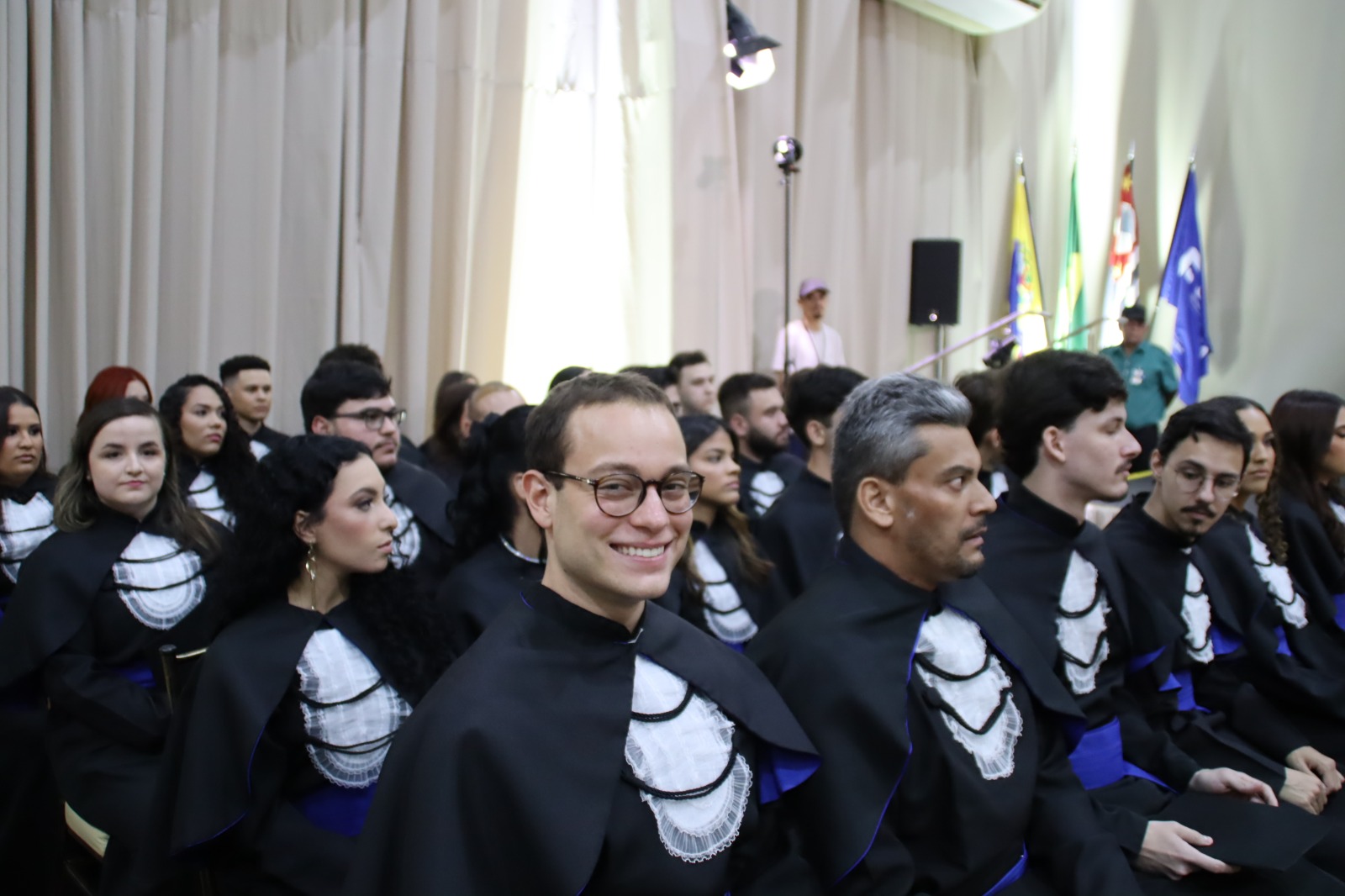 Administração UNIFIPA celebra formatura da 51ª turma Luiz Felicio Chaves sexta, 19 de dezembro, 2025 A UNIFIPA realizou, no dia 18 de dezembro, a cerimônia de colação de grau da 51ª turma do curso de Administração, formando 29 novos bacharéis. A solenidade ocorreu na Sala Movimento e Saúde, no campus sede da instituição, e homenageou o professor Dr. Nilson Mozas Olivares, que deu nome à turma. A mesa solene foi presidida pela pró-reitora de Pesquisa e Pós-Graduação da UNIFIPA, Profa. Dra. Ana Paula Girol, representando o reitor, Dr. Nelson Jimenes, e a vice-reitora, Cristiane Procópio de Oliveira. Também compuseram a mesa o coordenador do curso, professor mestre Antônio Ágide Mota Júnior; o paraninfo da turma, professor Vinicius Eduardo Gussi, e o patrono, Prof. Me. Cléber Peres, todos homenageados pelos formandos. O juramento foi conduzido pelo formando Bruno Moraes de Carvalho e a mensagem de agradecimento proferida pela oradora da turma, Lorelai Tarraga. A pró-reitora conferiu o grau de bacharel em Administração aos formandos, enquanto o patrono e o paraninfo entregaram simbolicamente as declarações aos novos profissionais. A solenidade teve ainda com a presença de docentes que participaram da formação acadêmica dos formandos, entre eles os professores Adriano Cesar de Araújo, André Luiz Franco, Diego Gil Menis, Gabriela Lanza Porcionato, José Claudinei Cordeiro, Júlio Prado Neto, Karen Regina Nogueira Batista e Márcia Helena Magati Antonioli. Durante o evento, o Prof. Mota destacou a importância da continuidade na formação profissional e parabenizou os formandos pela conclusão do curso. “Não parem por aqui; é só o primeiro passo que vocês estão dando para um futuro que tenho certeza que já garantiram. Quero cumprimentar também pela escolha da instituição de ensino que escolheram; o sucesso os aguarda”, disse Mota.