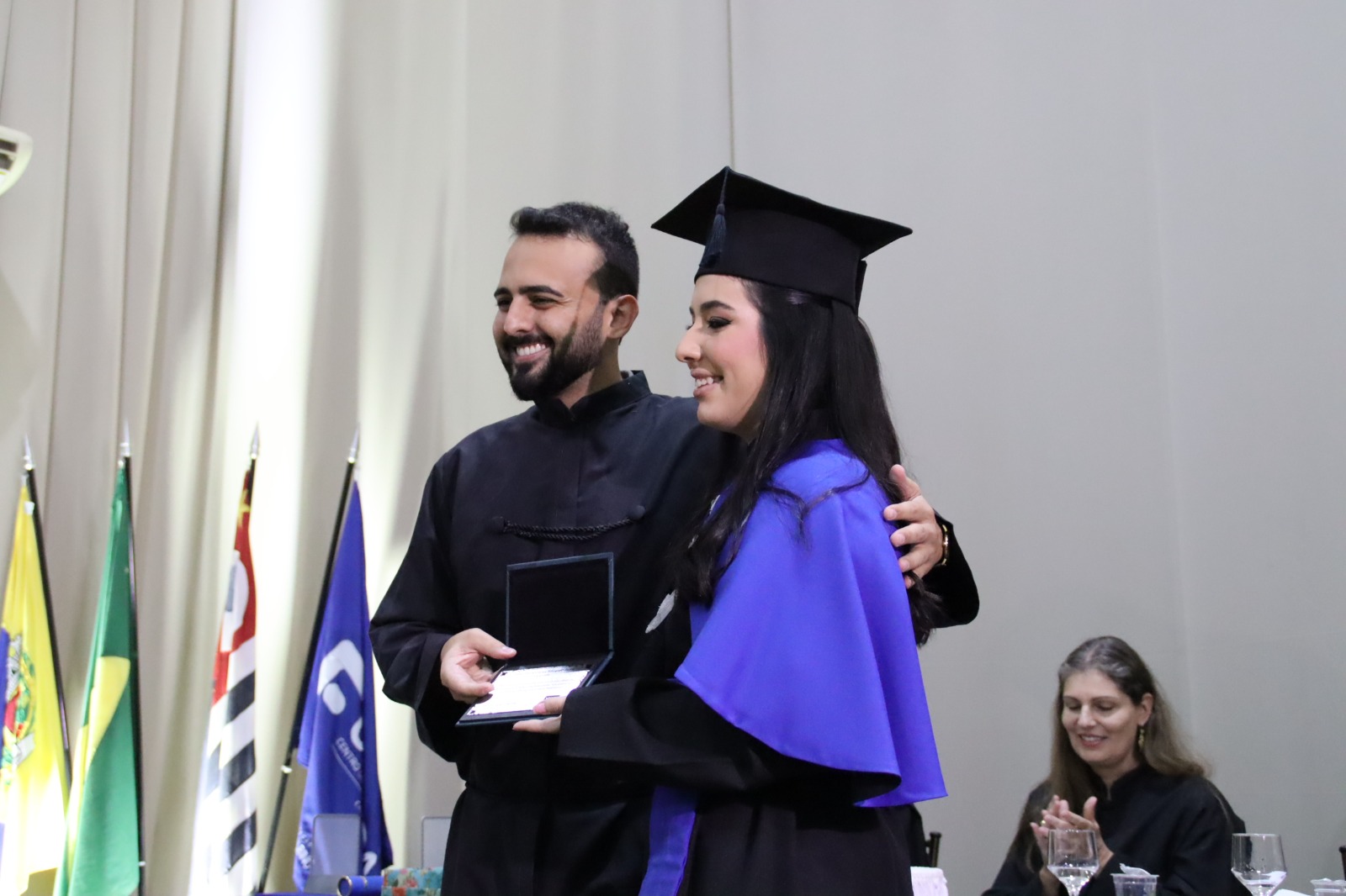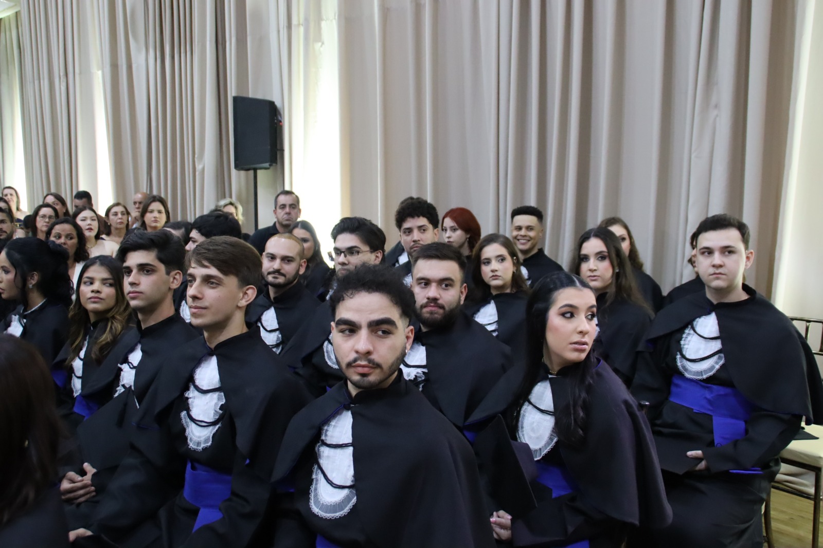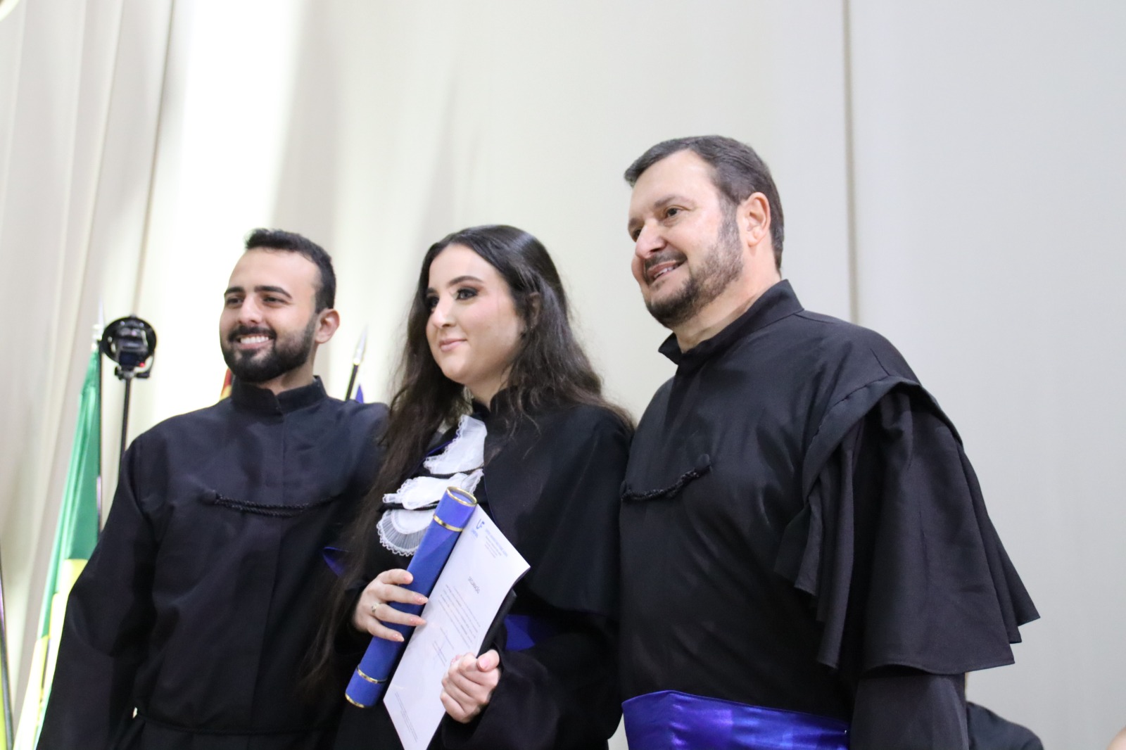 Administração UNIFIPA celebra formatura da 51ª turma Luiz Felicio Chaves sexta, 19 de dezembro, 2025 A UNIFIPA realizou, no dia 18 de dezembro, a cerimônia de colação de grau da 51ª turma do curso de Administração, formando 29 novos bacharéis. A solenidade ocorreu na Sala Movimento e Saúde, no campus sede da instituição, e homenageou o professor Dr. Nilson Mozas Olivares, que deu nome à turma. A mesa solene foi presidida pela pró-reitora de Pesquisa e Pós-Graduação da UNIFIPA, Profa. Dra. Ana Paula Girol, representando o reitor, Dr. Nelson Jimenes, e a vice-reitora, Cristiane Procópio de Oliveira. Também compuseram a mesa o coordenador do curso, professor mestre Antônio Ágide Mota Júnior; o paraninfo da turma, professor Vinicius Eduardo Gussi, e o patrono, Prof. Me. Cléber Peres, todos homenageados pelos formandos. O juramento foi conduzido pelo formando Bruno Moraes de Carvalho e a mensagem de agradecimento proferida pela oradora da turma, Lorelai Tarraga. A pró-reitora conferiu o grau de bacharel em Administração aos formandos, enquanto o patrono e o paraninfo entregaram simbolicamente as declarações aos novos profissionais. A solenidade teve ainda com a presença de docentes que participaram da formação acadêmica dos formandos, entre eles os professores Adriano Cesar de Araújo, André Luiz Franco, Diego Gil Menis, Gabriela Lanza Porcionato, José Claudinei Cordeiro, Júlio Prado Neto, Karen Regina Nogueira Batista e Márcia Helena Magati Antonioli. Durante o evento, o Prof. Mota destacou a importância da continuidade na formação profissional e parabenizou os formandos pela conclusão do curso. “Não parem por aqui; é só o primeiro passo que vocês estão dando para um futuro que tenho certeza que já garantiram. Quero cumprimentar também pela escolha da instituição de ensino que escolheram; o sucesso os aguarda”, disse Mota.