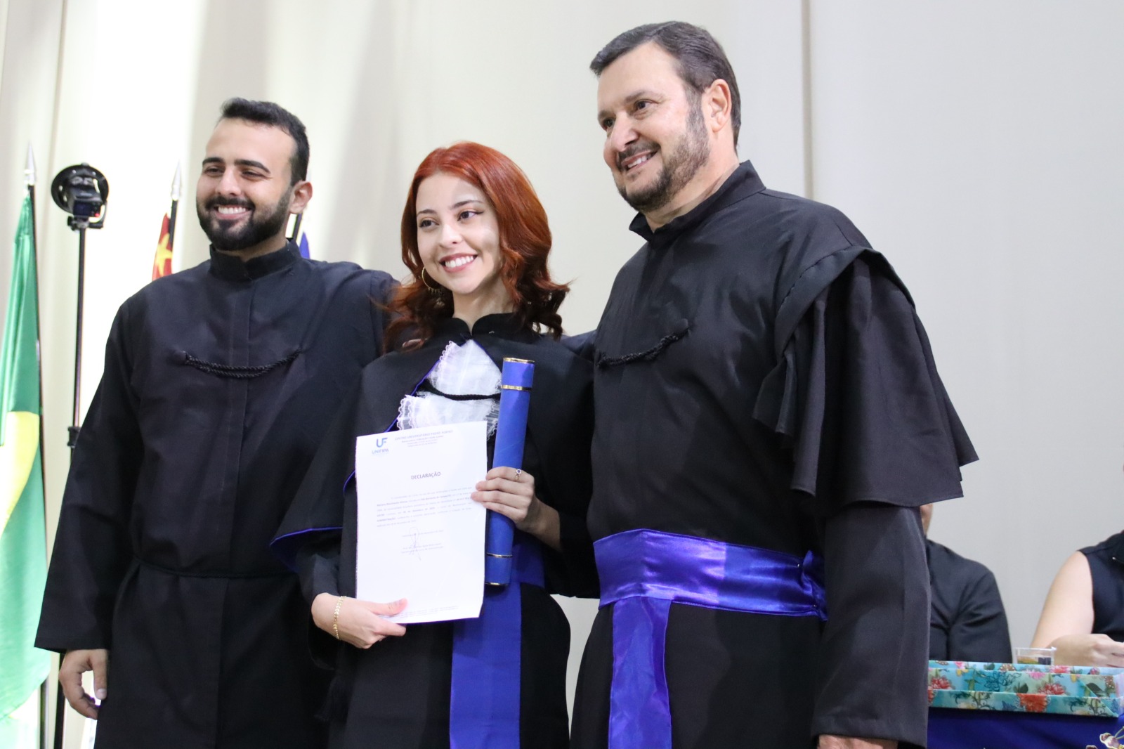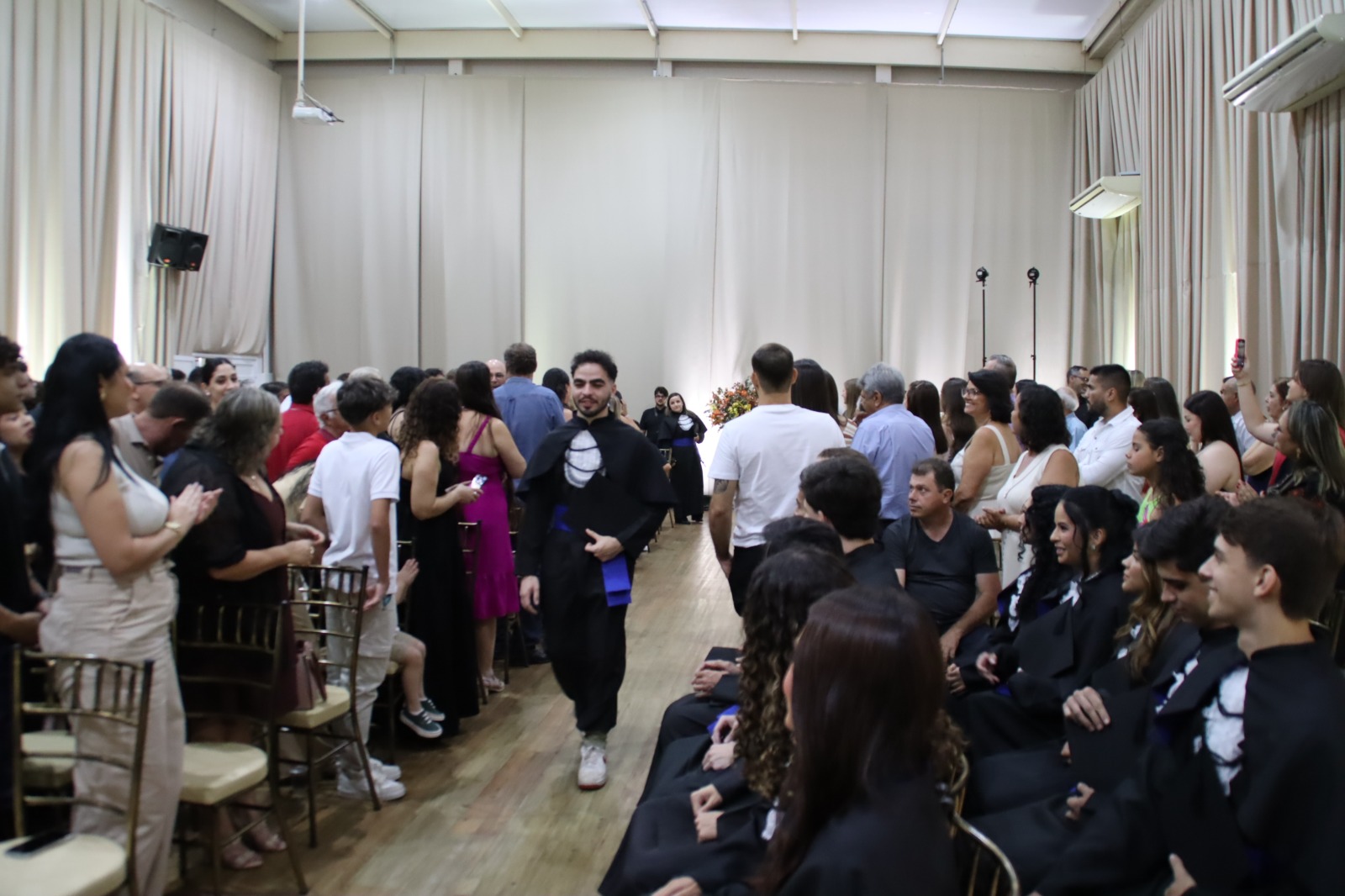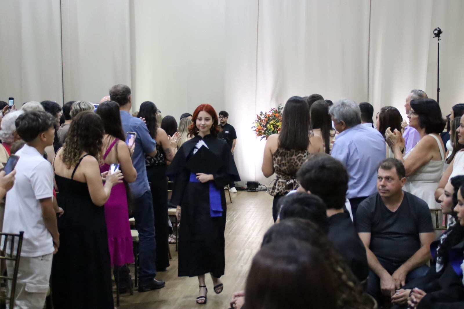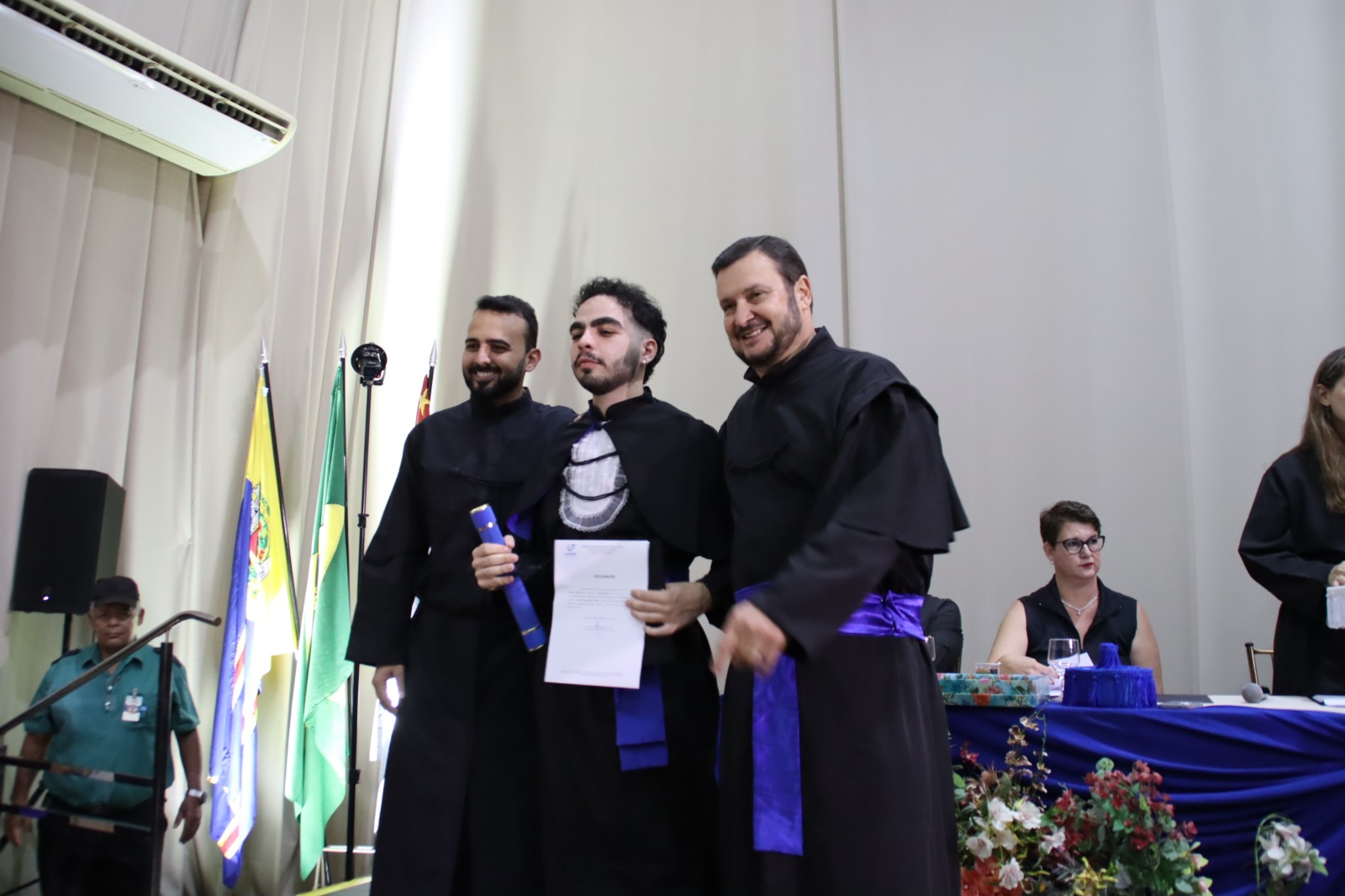 Administração UNIFIPA celebra formatura da 51ª turma Luiz Felicio Chaves sexta, 19 de dezembro, 2025 A UNIFIPA realizou, no dia 18 de dezembro, a cerimônia de colação de grau da 51ª turma do curso de Administração, formando 29 novos bacharéis. A solenidade ocorreu na Sala Movimento e Saúde, no campus sede da instituição, e homenageou o professor Dr. Nilson Mozas Olivares, que deu nome à turma. A mesa solene foi presidida pela pró-reitora de Pesquisa e Pós-Graduação da UNIFIPA, Profa. Dra. Ana Paula Girol, representando o reitor, Dr. Nelson Jimenes, e a vice-reitora, Cristiane Procópio de Oliveira. Também compuseram a mesa o coordenador do curso, professor mestre Antônio Ágide Mota Júnior; o paraninfo da turma, professor Vinicius Eduardo Gussi, e o patrono, Prof. Me. Cléber Peres, todos homenageados pelos formandos. O juramento foi conduzido pelo formando Bruno Moraes de Carvalho e a mensagem de agradecimento proferida pela oradora da turma, Lorelai Tarraga. A pró-reitora conferiu o grau de bacharel em Administração aos formandos, enquanto o patrono e o paraninfo entregaram simbolicamente as declarações aos novos profissionais. A solenidade teve ainda com a presença de docentes que participaram da formação acadêmica dos formandos, entre eles os professores Adriano Cesar de Araújo, André Luiz Franco, Diego Gil Menis, Gabriela Lanza Porcionato, José Claudinei Cordeiro, Júlio Prado Neto, Karen Regina Nogueira Batista e Márcia Helena Magati Antonioli. Durante o evento, o Prof. Mota destacou a importância da continuidade na formação profissional e parabenizou os formandos pela conclusão do curso. “Não parem por aqui; é só o primeiro passo que vocês estão dando para um futuro que tenho certeza que já garantiram. Quero cumprimentar também pela escolha da instituição de ensino que escolheram; o sucesso os aguarda”, disse Mota.