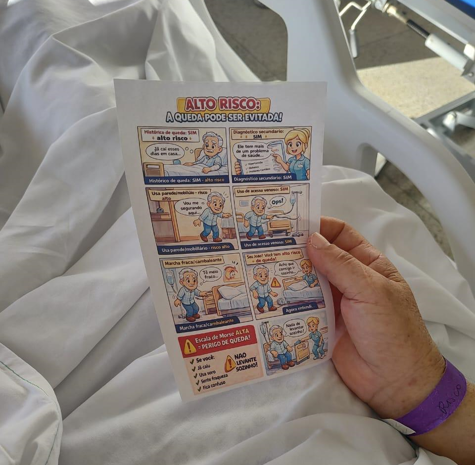 Enfermagem da Unifipa aborda a prevenção de quedas com pacientes no HEC Alan Gazola quarta, 15 de abril, 2026 Projeto de extensão colabora com a saúde da comunidade através de ações educativas. Alunos do 4º ano do curso de Enfermagem da Unifipa realizaram importante projeto de extensão na Ala Roxa do Hospital Emílio Carlos no último dia 9 de abril. A iniciativa teve como tema a prevenção de quedas, abordando pacientes e acompanhantes por meio de dinâmica educativa interativa com o objetivo de orientar tanto pacientes como os acompanhantes sobre situações de risco para quedas no ambiente hospitalar, além de apresentar medidas preventivas essenciais para garantir sua segurança. Durante a atividade também foram discutidas as possíveis consequências de queda, reforçando a importância da atenção e do cuidado contínuo. Outro ponto destacado foi a existência de protocolos específicos adotados pelo hospital, que visam assegurar qualidade e segurança na assistência prestada e que muitas vezes os atendidos não sabem. De acordo com a orientadora do projeto, Profª Ma. Marina Ferreira Caiuby, a escolha do tema considerou o perfil do hospital, especializado no atendimento à população idosa. “O conteúdo foi trabalhado por meio de orientações verbais e folhetos ilustrativos com linguagem simples, em formato de história em quadrinhos. Também incentivamos os pacientes a compartilharem experiências pessoais relacionadas a quedas, o que aumentou a participação e o envolvimento de todos”, explicou. A docente ressaltou ainda que o projeto de extensão vai além da conscientização dos pacientes e acompanhantes. “Essa iniciativa também contribui para a formação dos alunos, proporcionando vivência prática em educação em saúde, além de desenvolver habilidades como comunicação, empatia e adaptação da linguagem ao público-alvo”, destacou. Participaram da ação os alunos Lívia Mariana de Menezes, Kethellen Eduarda Toscaro da Silva, Matheus Moreira de Jesus e Amanda Ruola. Dicas importantes para prevenção de quedas:-Solicitar sempre ajuda da equipe de enfermagem ao levantar-se, principalmente em casos de tontura ou fraqueza;-Manter o ambiente organizado, livre de obstáculos e com boa iluminação;-Utilizar calçados adequados e antiderrapantes;-Evitar caminhar sozinho quando houver risco identificado;-Ficar atento ao uso de medicamentos que podem causar sonolência ou tontura;-Manter as grades do leito elevadas;-Ter cuidado com áreas molhadas e solicitar a limpeza quando necessário;-Não ter receio de pedir ajuda — isso faz parte do cuidado. Fotos/Divulgação