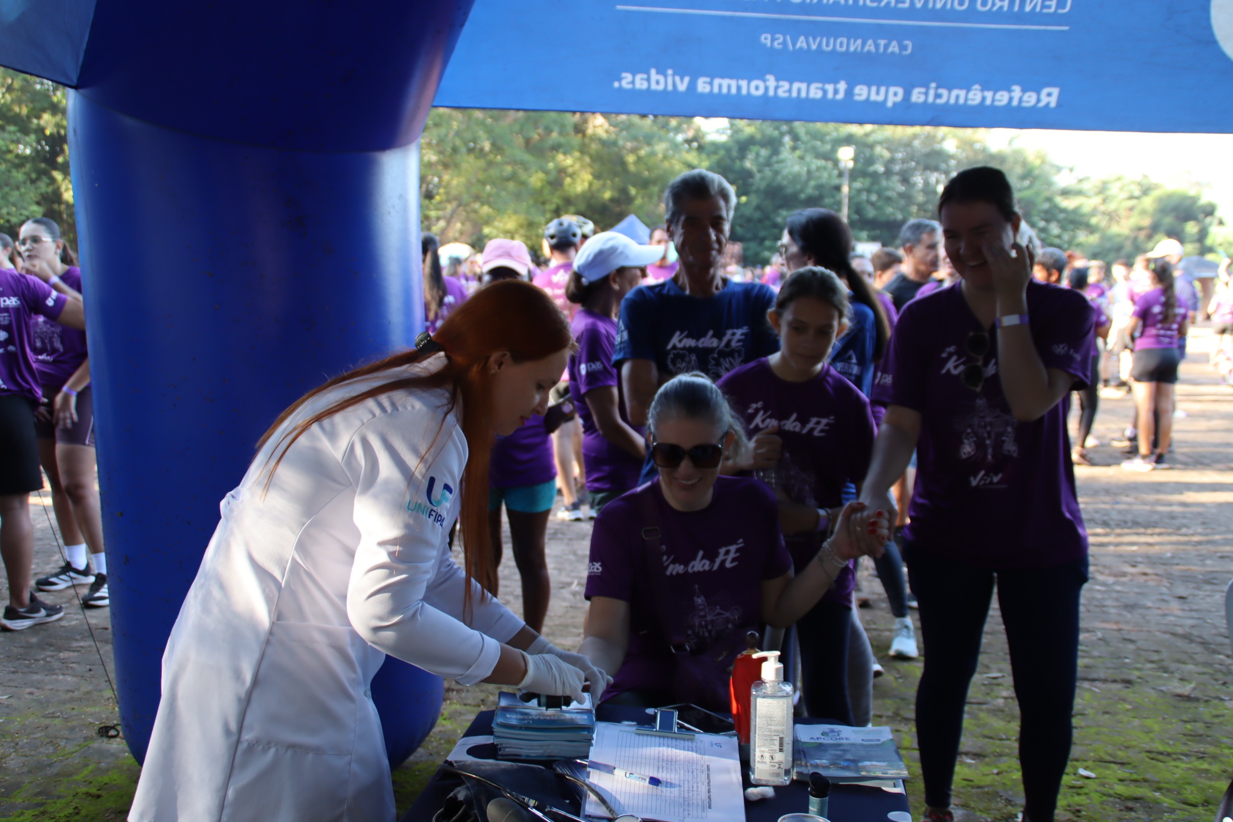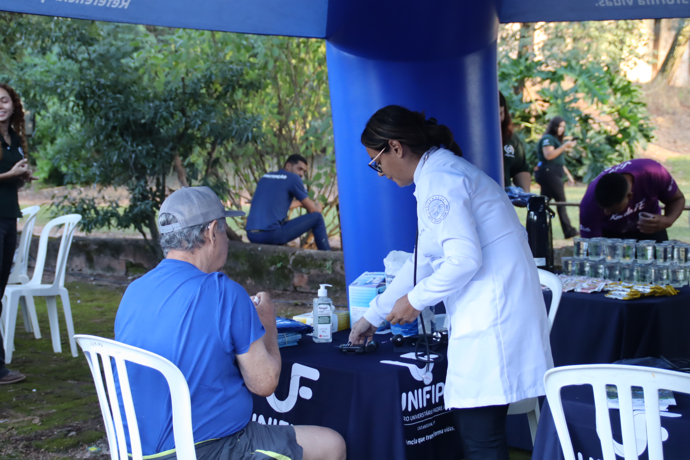 UNIFIPA participa do 2º Km da Fé com ações de saúde, sustentabilidade e integração Marcella Milani segunda, 20 de abril, 2026 A UNIFIPA participou do 2º Km da Fé, realizado no dia 19 de abril, contribuindo com ações voltadas à promoção da saúde, sustentabilidade e interação com os participantes. Alunos e professores do curso de Enfermagem realizaram aferição de pressão arterial e testes de glicemia, oferecendo orientações e cuidados preventivos ao público presente. Já o curso de Agronomia participou com a distribuição de mudas, orientações sobre cultivo e cuidados com as plantas, incentivando práticas sustentáveis e o contato com a natureza. A programação contou ainda com brindes e dinâmicas, tornando a experiência ainda mais acolhedora e participativa para todos os envolvidos.